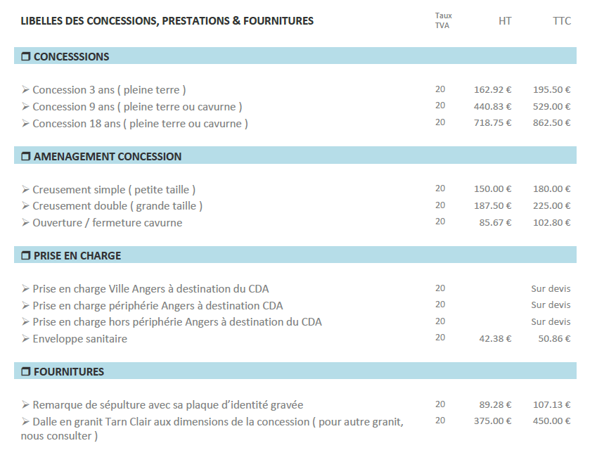 Tarifs 2025 / TTC en €